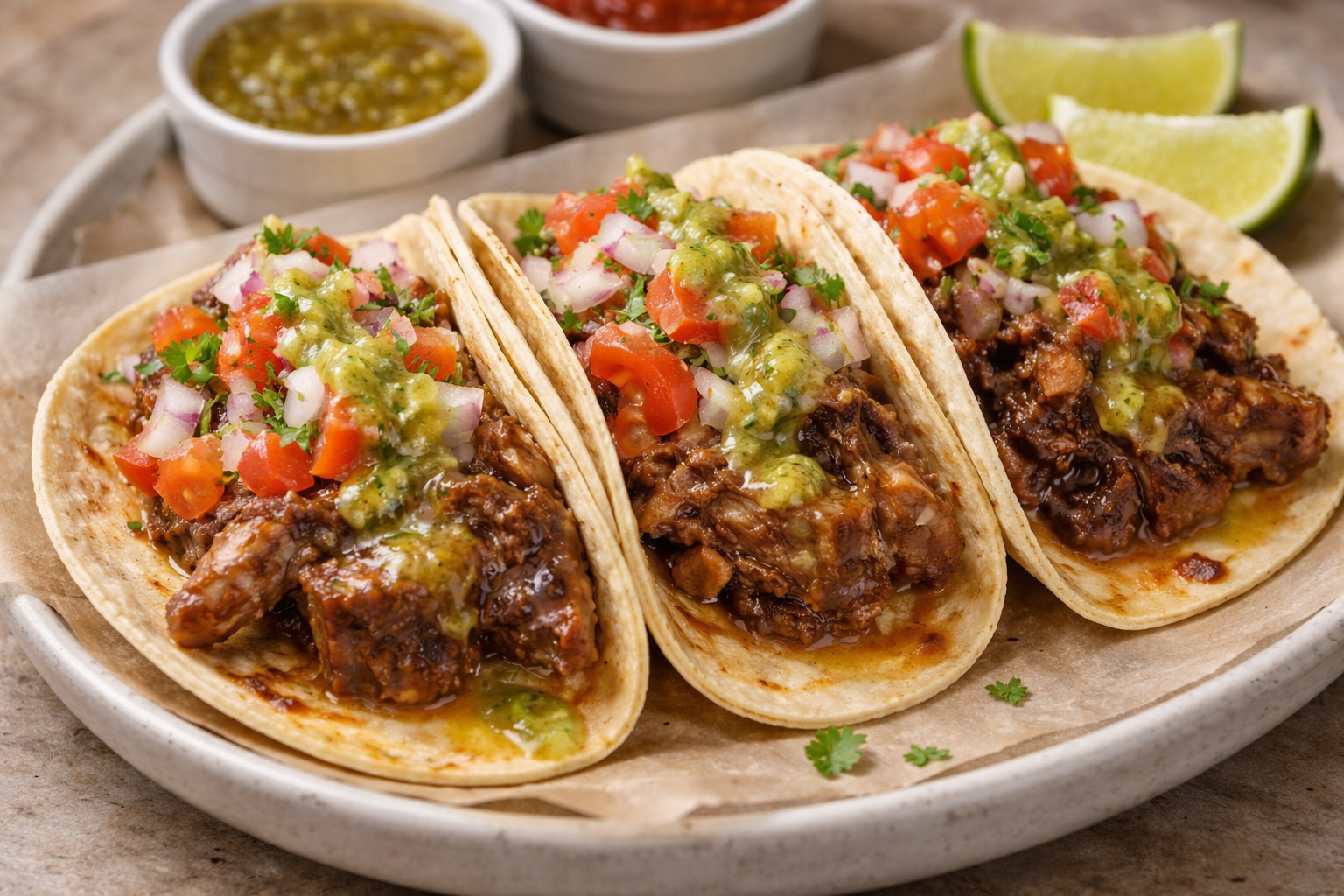 Homemade tortilla, braised oxtail, pico de gallo