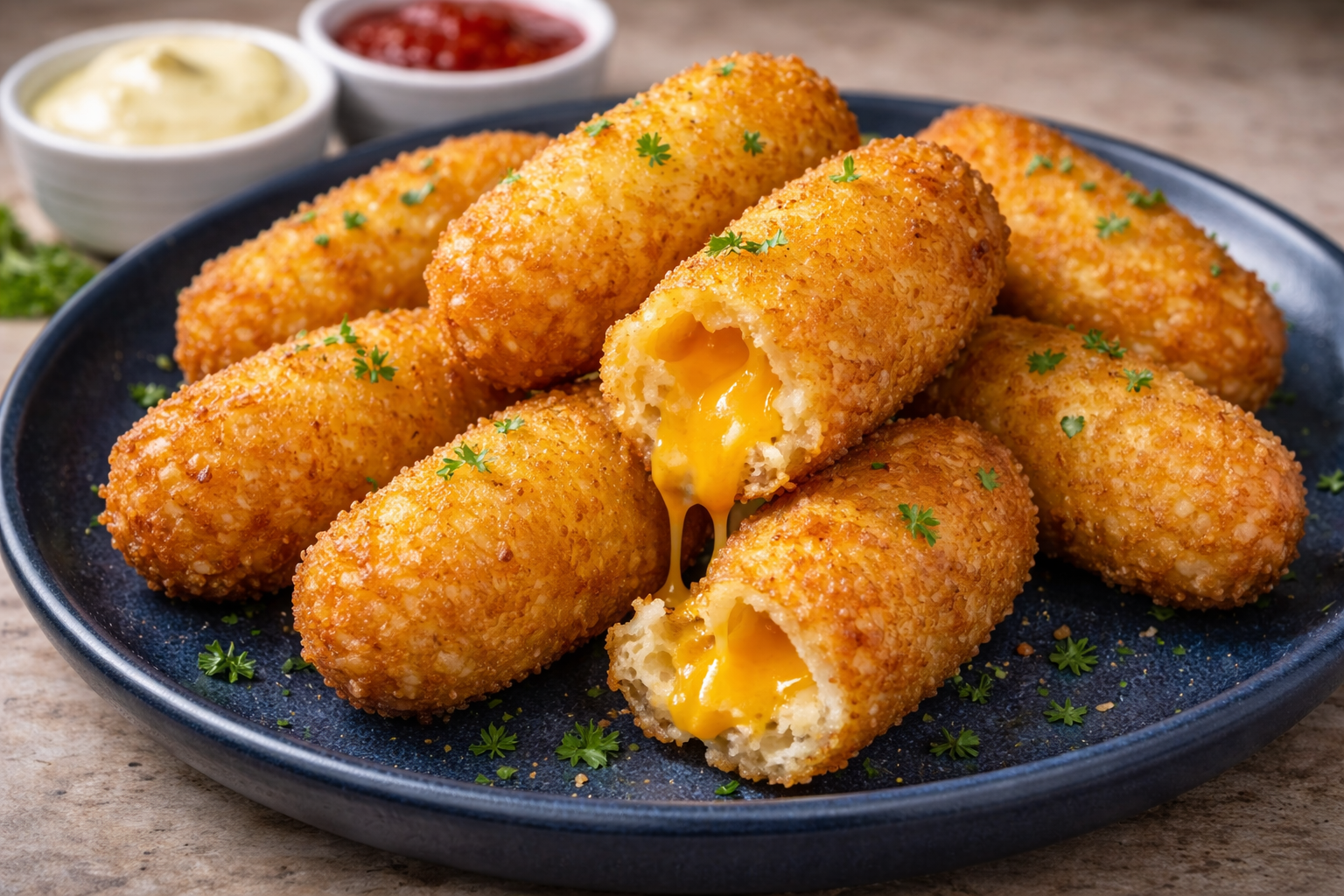 Shredded yuca fritters stuffed with cheddar cheese